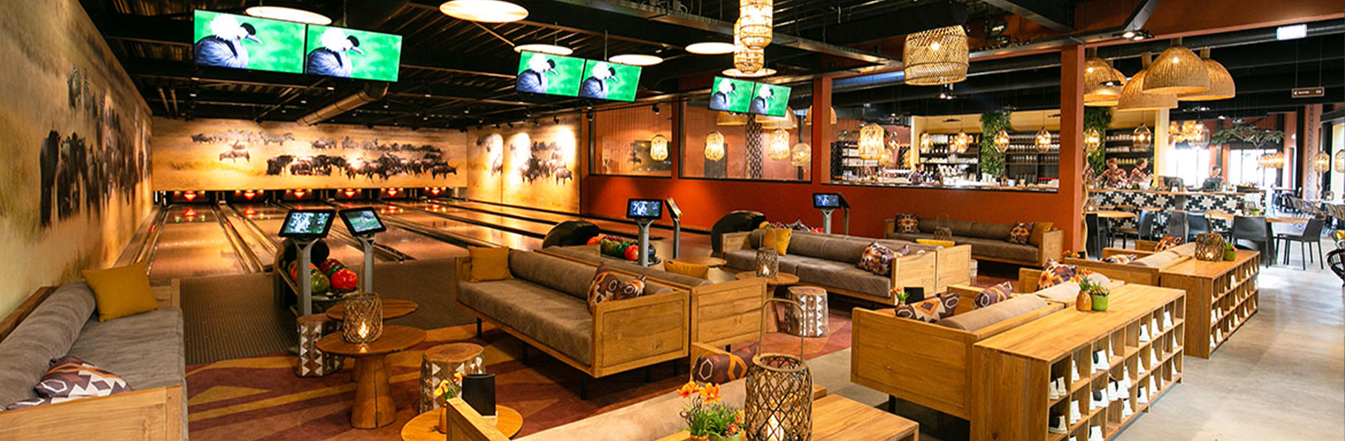 In the central building of the brand new Safari Resort Beekse Bergen, Bowltech provided and installed a 6 lane bowling center with equipment from QubicaAMF. The African ambiance of the center blends in perfectly with the rest of the themed resort and park. This resort is equipped with QubicaAMF Boutique English Walnut lanes, TMS string-pinspotters, BES X Ultimate scoring system, Harmony Ball Returns, an automatic bumper system and to top it off, these lanes will always be in perfect condition with their new QubicaAMF EZ Touch lane machine.