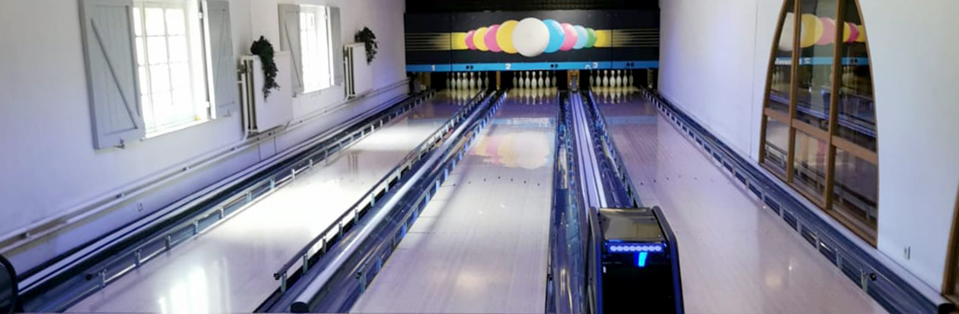 Recreation Park Récréalle is located on the border of Belgium and France in the Ardennes. You can enjoy canoeing, mountain climbing, trampolining, mini golf and many other indoor and outdoor activities. Bowling should of course be included in that list. In the spring of 2020, we have modernised the 3-lane bowling and prepared it for many more years of bowling fun. The ball racks have been replaced and the old wooden lanes have been dismantled and replaced by new underlayment and synthetic panels.