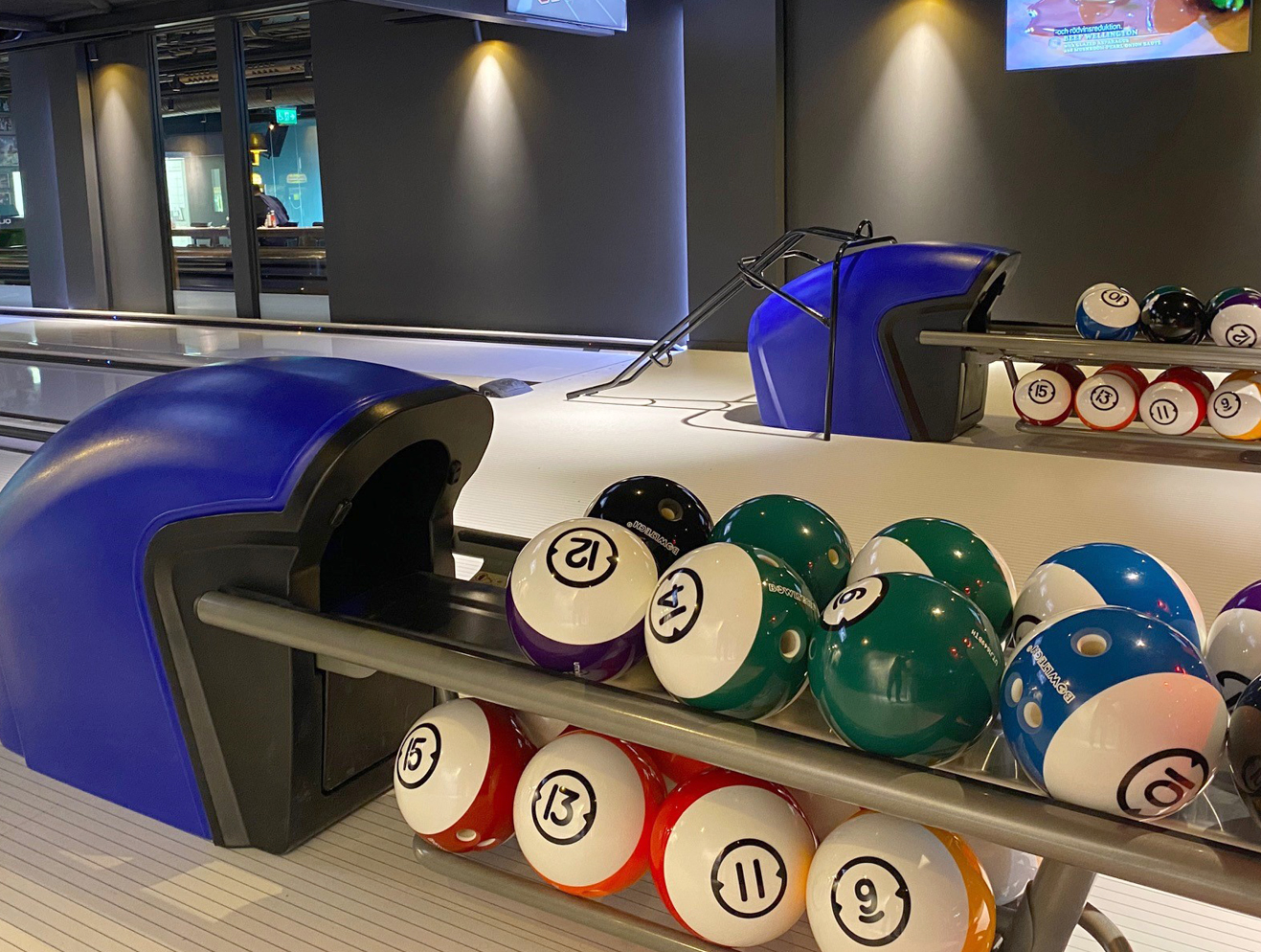 Owner Magnus Waldman Slim enjoyed working with us throughout the whole process, from idea to realisation to the end result. The 4-lane bowling area is equipped with the very best and latest bowling equipment from Qubica AMF.