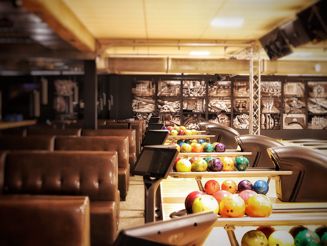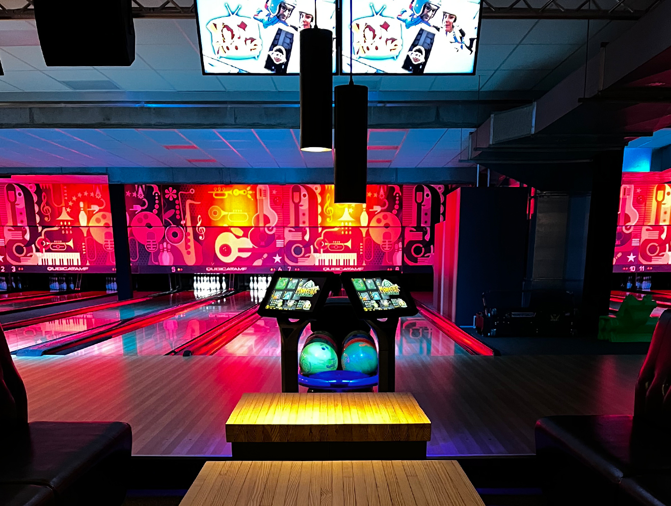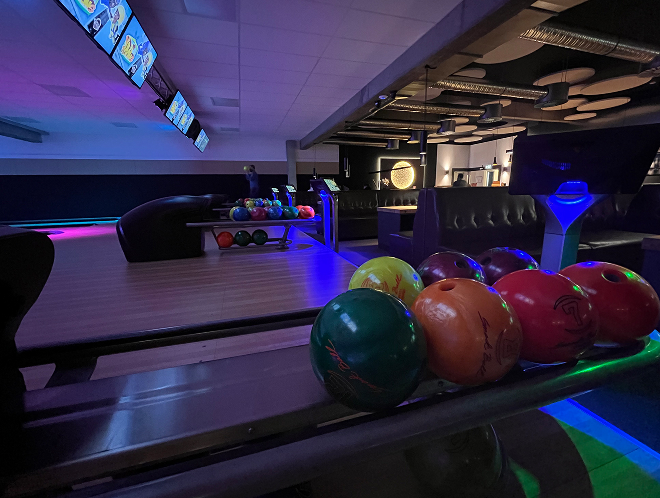 We installed EDGE String pinspotters for a reliable and authentic bowling experience. The BES X Ultimate scoring system in combination with the SuperTouch Bowling consoles ensures the bowlers can enjoy a great set of entertainment features. Also every lane is equipped with the save and stylish Harmony Ball Returns.