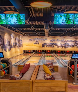 In the central building of the brand new Safari Resort Beekse Bergen, Bowltech provided and installed a 6 lane bowling center with equipment from QubicaAMF. The African ambiance of the center blends in perfectly with the rest of the themed resort and park. This resort is equipped with QubicaAMF Boutique English Walnut lanes, TMS string-pinspotters, BES X Ultimate scoring system, Harmony Ball Returns, an automatic bumper system and to top it off, these lanes will always be in perfect condition with their new QubicaAMF EZ Touch lane machine.